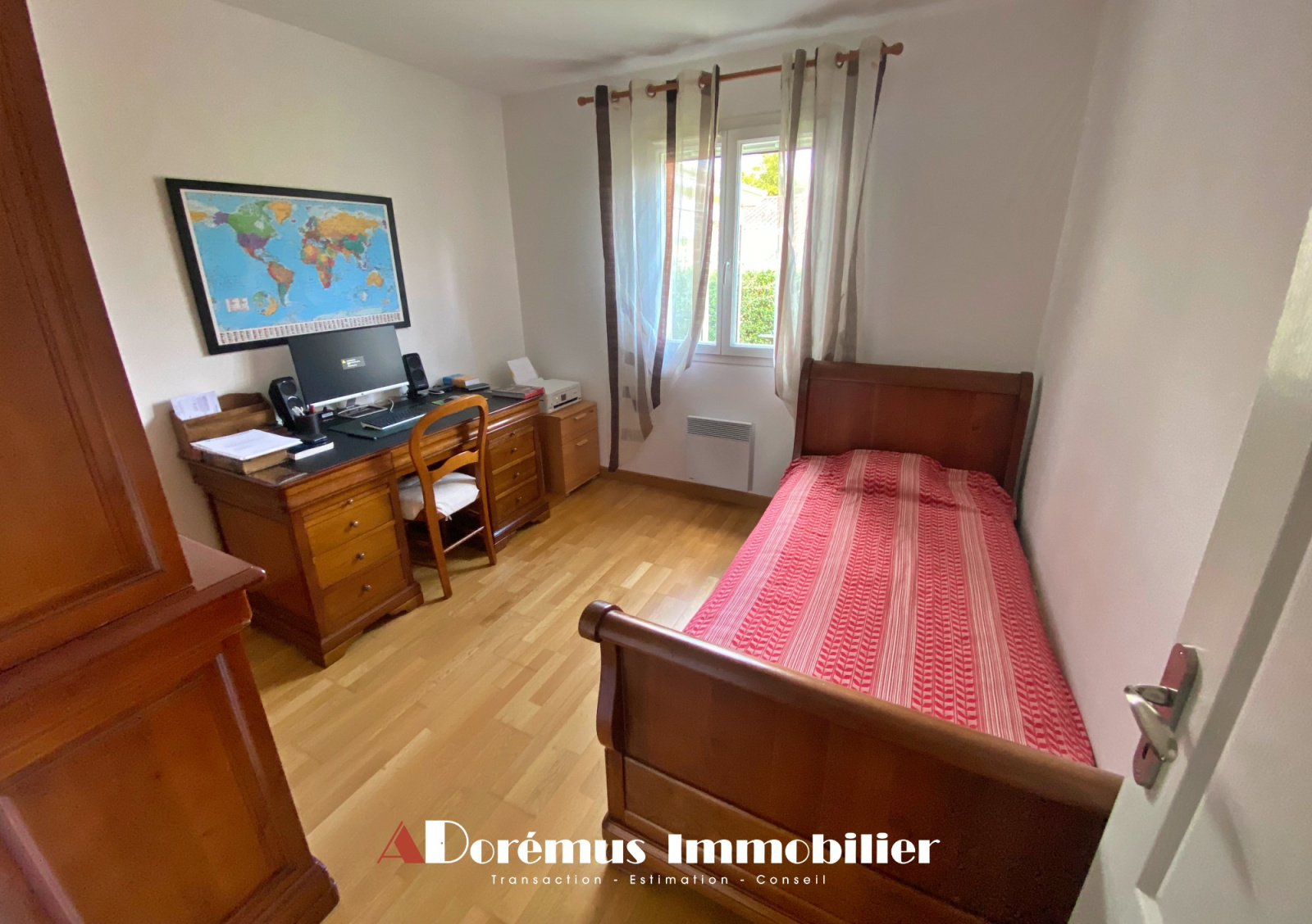 À seulement 2,5 km du centre de QUINSAC, DOREMUS IMMOBILIER a eu le plaisir de vendre EN EXCLUSIVITÉ cette ravissante maison de plain-pied en parfait état. Elle offrait un séjour lumineux avec cuisine ouverte équipée de 45 m², complété par une belle véranda isolée de 19 m². Côté nuit : 3 chambres, une salle de bains avec douche, WC séparés et un garage attenant. Une dépendance aménageable de 16 m² et un terrain clos, piscinable de 1000 m², complétaient ce bien niché dans un environnement calme et recherché.