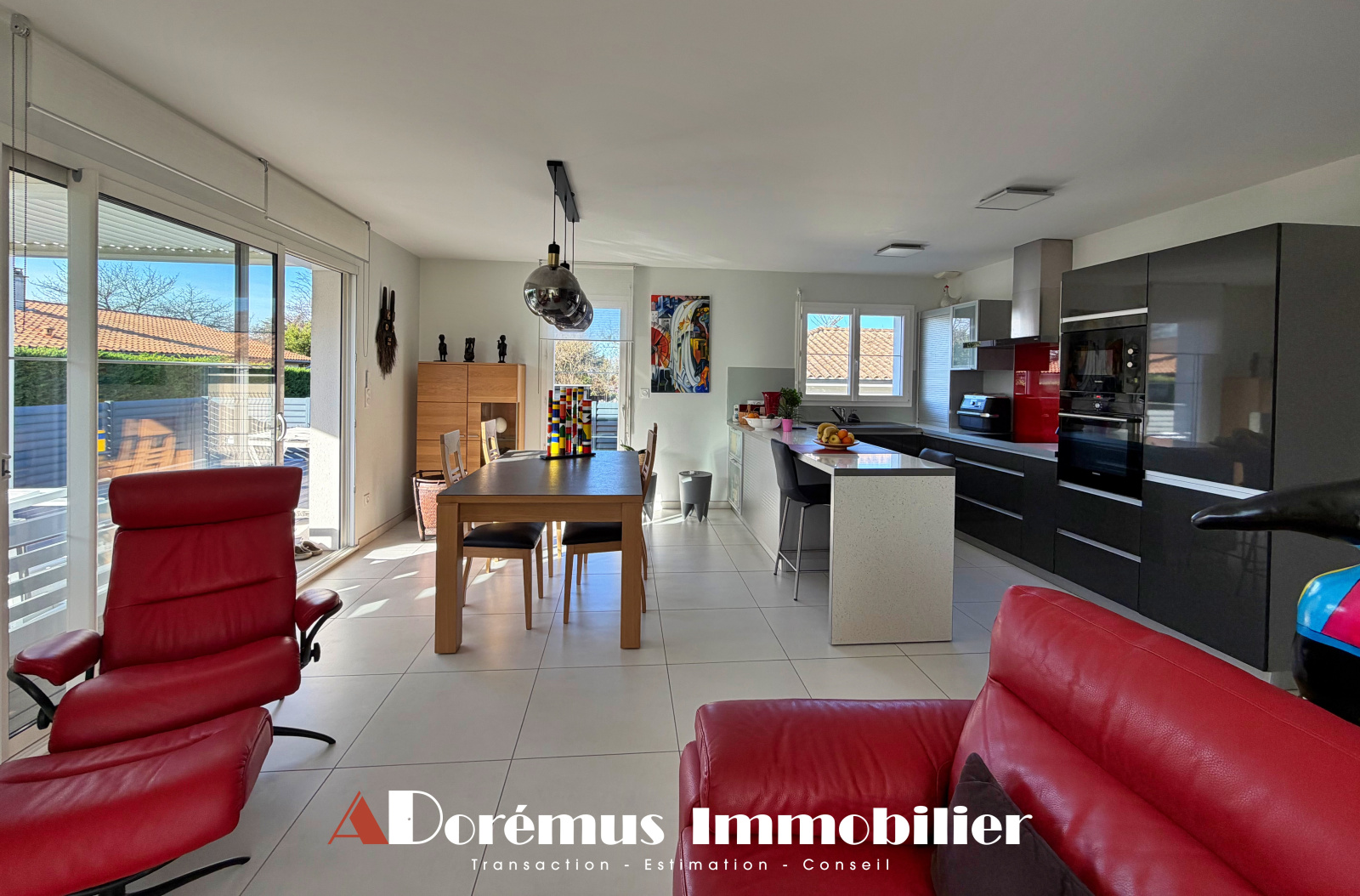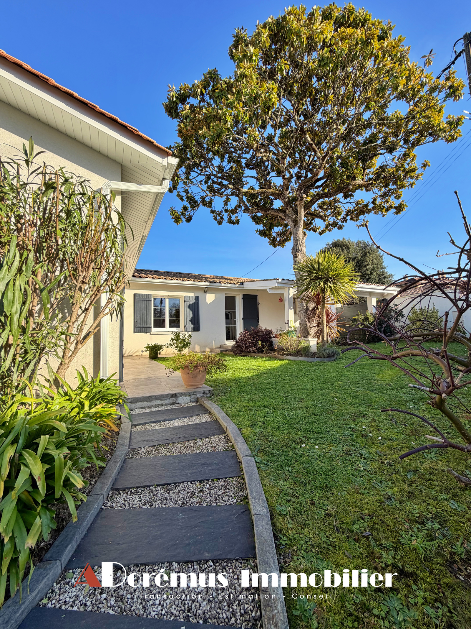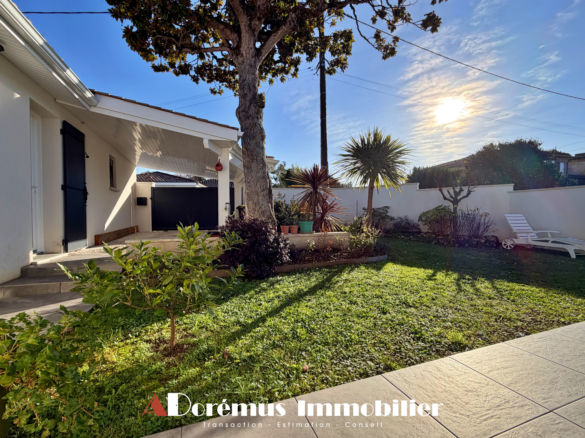 OFFRE D'ACHAT ACCEPTÉE! RARE À QUINSAC (33360) - 15KMS BORDEAUX CENTRE - Idéalement située, commerces et écoles à pieds! DORÉMUS IMMOBILIER vous propose cette adorable maison de plain-pied, construite en 2016. Agréable et lumineuse pièce de vie avec cuisine US entièrement équipée, ouverte sur une vaste terrasse couverte par une pergola bioclimatique et un joli jardin paysager. Cellier/Buanderie, 2 grandes chambres (15,20m2 et 14,50m2), Salle d'eau avec grande douche à l'italienne et WC séparés. Une pièce indépendante de 7m2 pourra faire office de bureau ou d'atelier. Garage attenant et Carport. ÉTAT NEUF! RARE À LA VENTE...