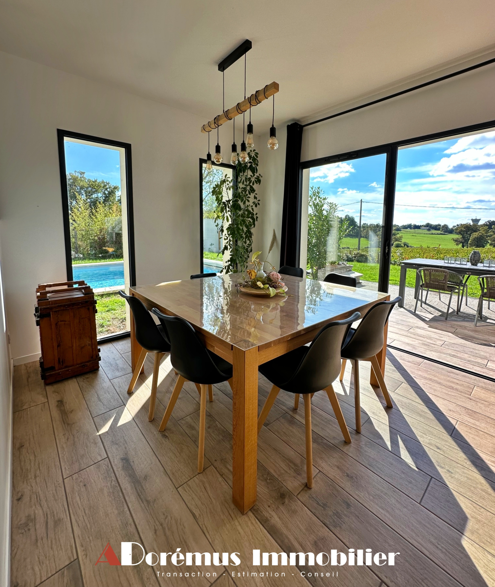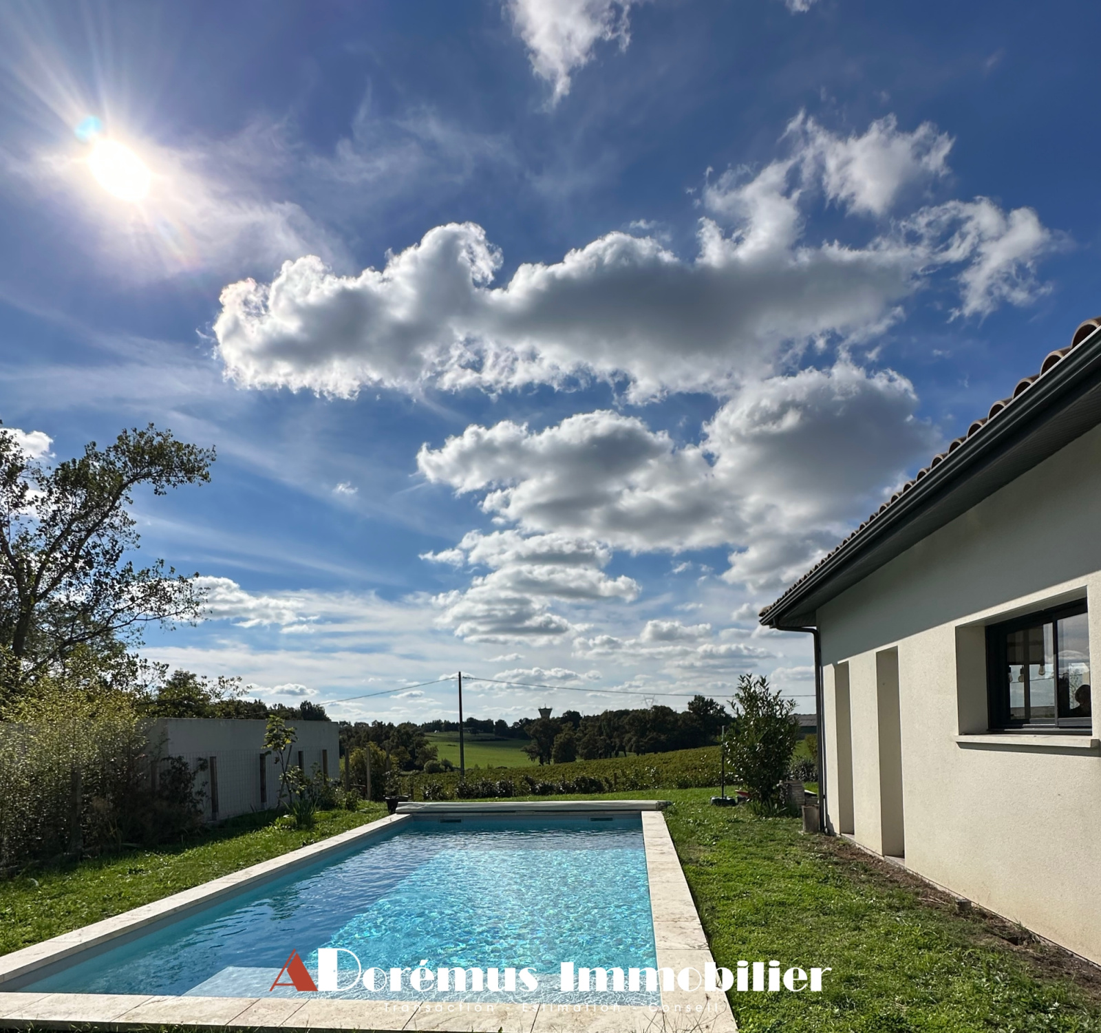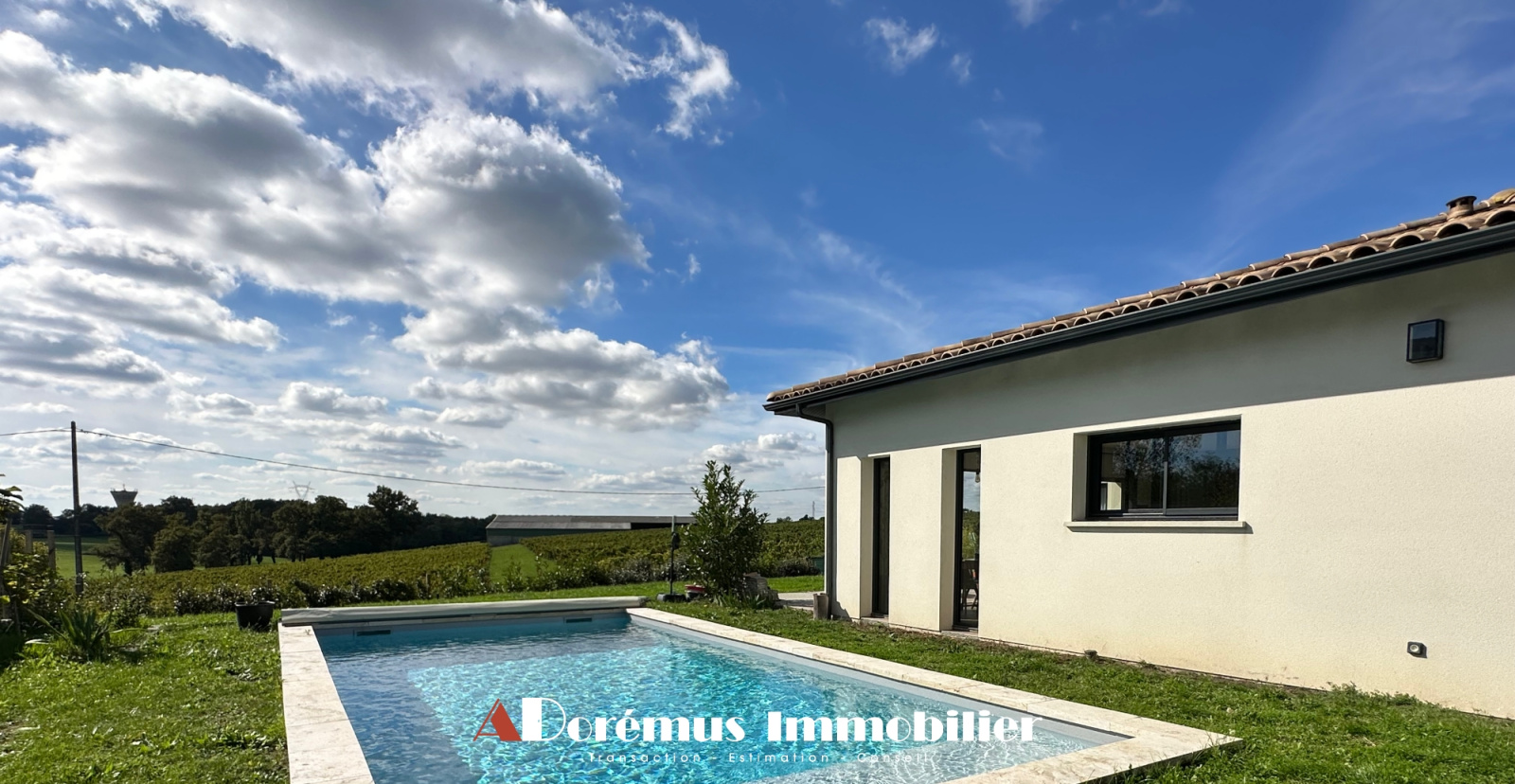 VENDU PAR NOS SOINS - Estimation offerte sur RDV - PRÈS ARTIGUES - DORÉMUS IMMOBILIER vous propose cette Maison contemporaine de 2020 offrant une vue dégagée sur un vallon! Séjour lumineux avec Cuisine équipée séparée par une double porte coulissante 47m2. Chambre parentale avec Salle d'eau/WC et Gds placards aménagés, 3 chambres supplémentaires, Salle de bains et WC indépendants. Terrain clos de 911m2 avec piscine 8x4m au sel. Parking 2 voitures (borne de recharge pour VE).