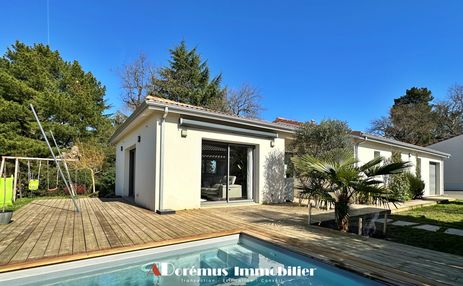 VENDUE PAR NOS SOINS - ESTIMATION OFFERTE SUR RDV - SUR LES HAUTEURS DE QUINSAC - EN POSITION DOMINANTE AVEC UNE JOLIE VUE DÉGAGÉE - DORÉMUS IMMOBILIER vous propose cette maison contemporaine de P-Pied achevée en 2019, offrant une belle et lumineuse pièce de vie ouverte par de larges baies sur les terrasses extérieures et sur la vue! Cuisine US équipée, cellier/Buanderie. 4 Chambres et Salle de bains + Douche composent la partie nuit. Chauffage au sol par PAC, domotique, aspiration centralisée. Les extérieurs, entièrement paysagers se composent d'un parking goudronné, terrasses en bois, piscine et Garage attenant à la maison. À VISITER SANS ATTENDRE...