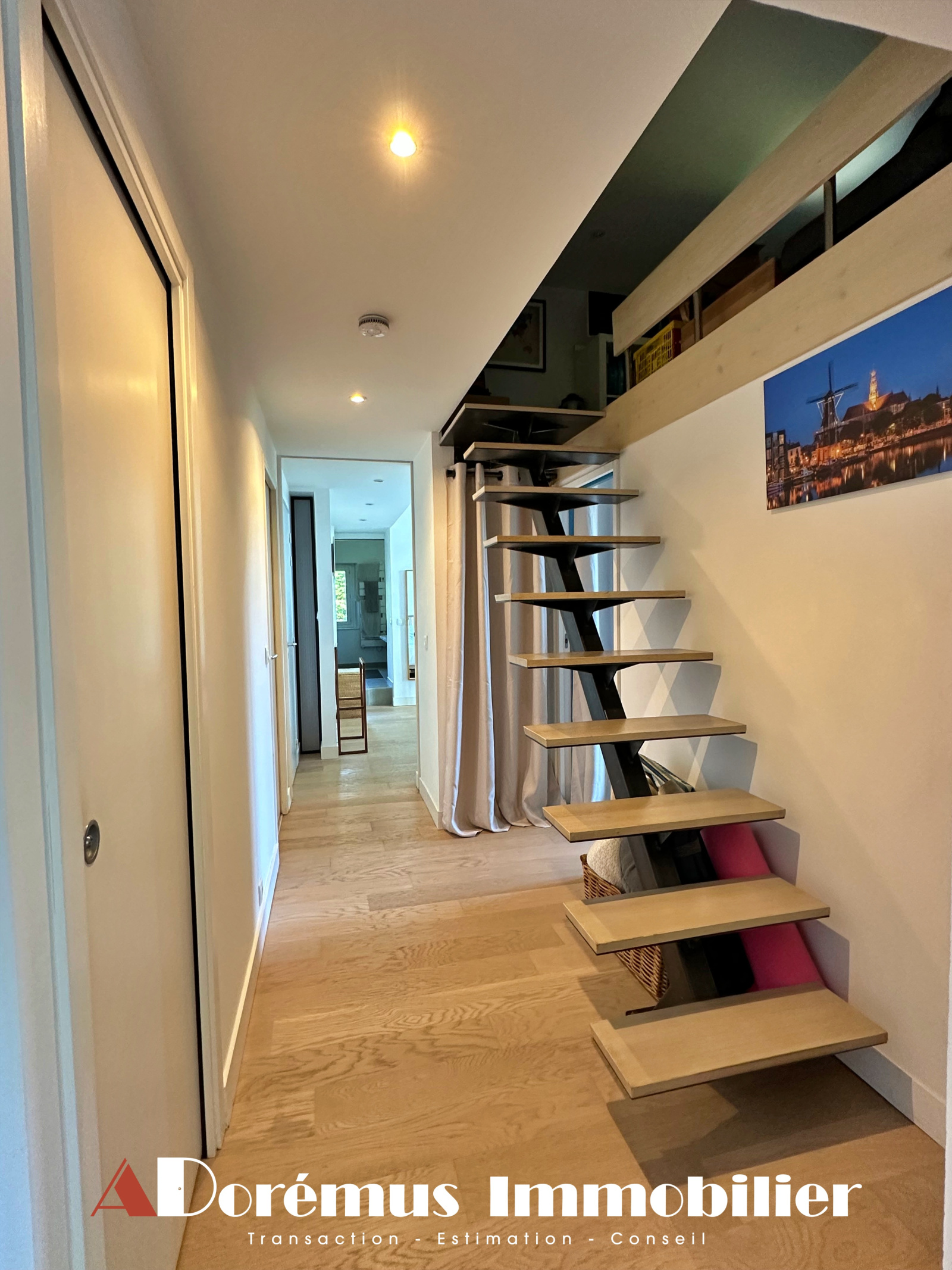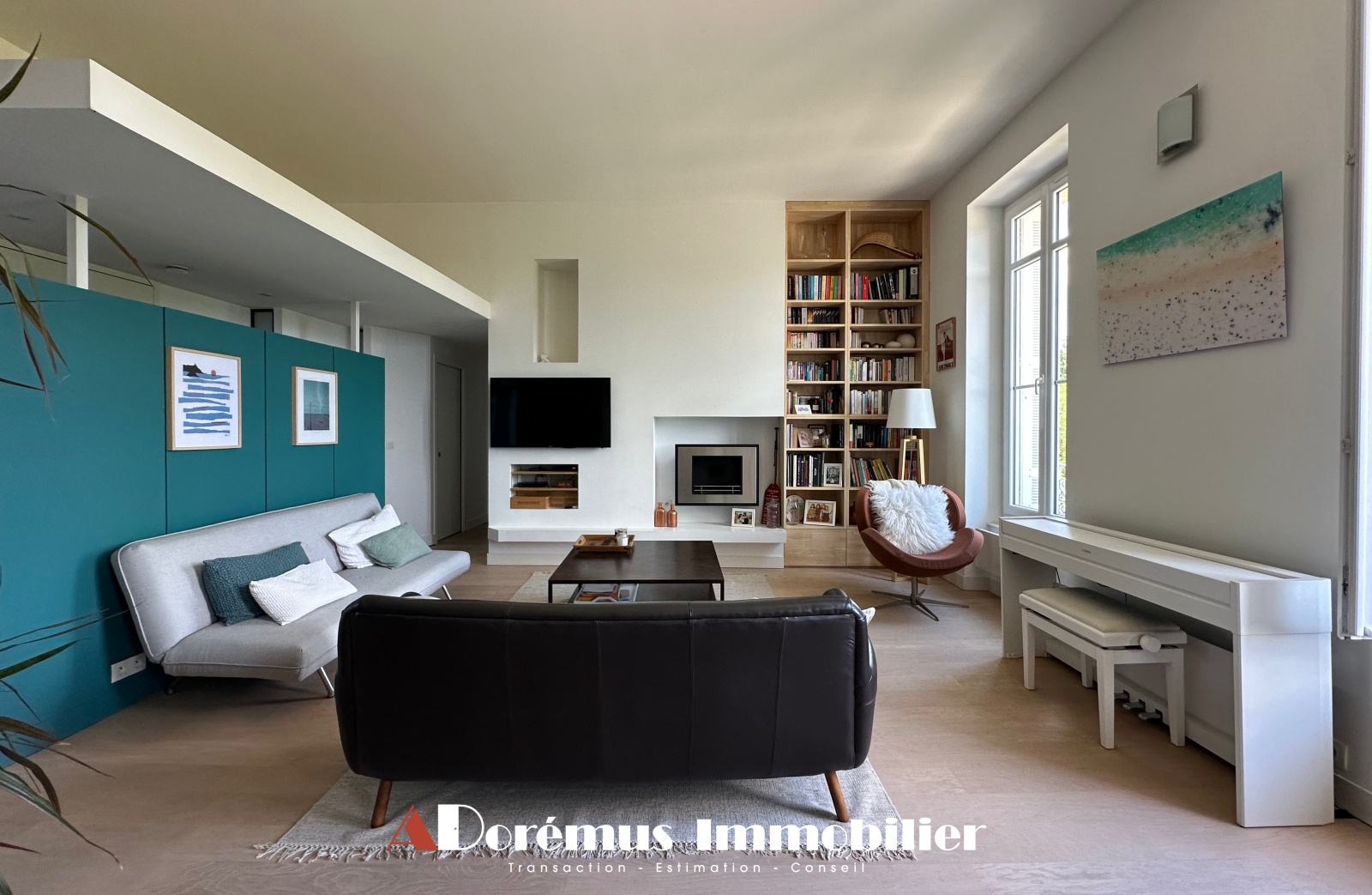 13 KMS GARE BORDEAUX ST JEAN - Sur les coteaux Rive Droite à CARIGNAN DE BORDEAUX (33360) - DORÉMUS IMMOBILIER vous propose cet APPARTEMENT DE STANDING, entièrement rénové par architecte, situé au 1er étage d'un authentique château de 1890. Au delà du charme de la propriété, nichée au coeur d'un parc de1,5Ha, dans un environnement calme et valloné, vous serez séduits par la belle pièce de vie de plus de 45m2, orientée Sud-Est, avec une très belle hauteur sous plafond et sa cuisine US entièrement équipée. L'espace nuit est composé d'une chambre, Salle d'eau et une mezzanine (chambre d'appoint) ainsi que d'une magnifique suite parentale comprenant une grande chambre de 18m2, un dressing aménagé et une salle de bains + douche à l'italienne! TRÈS RARE AUX PORTES DE BORDEAUX...